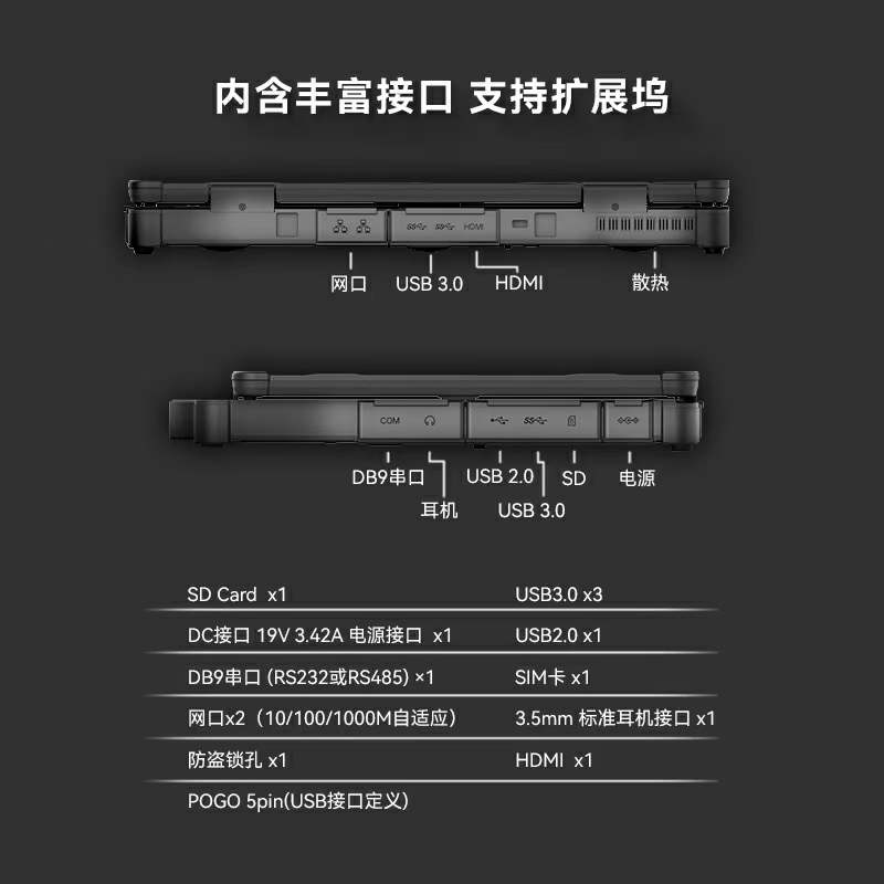 Ex NB09S contiene interfaces enriquecidas (puerto de red, interfaz USB, HDMI, conector para auriculares, etc.), es compatible con la estación de acoplamiento y la interfaz enriquecida mejora su propia capacidad de expansión, lo cual es conveniente para conectar e intercambiar datos con otros dispositivos.